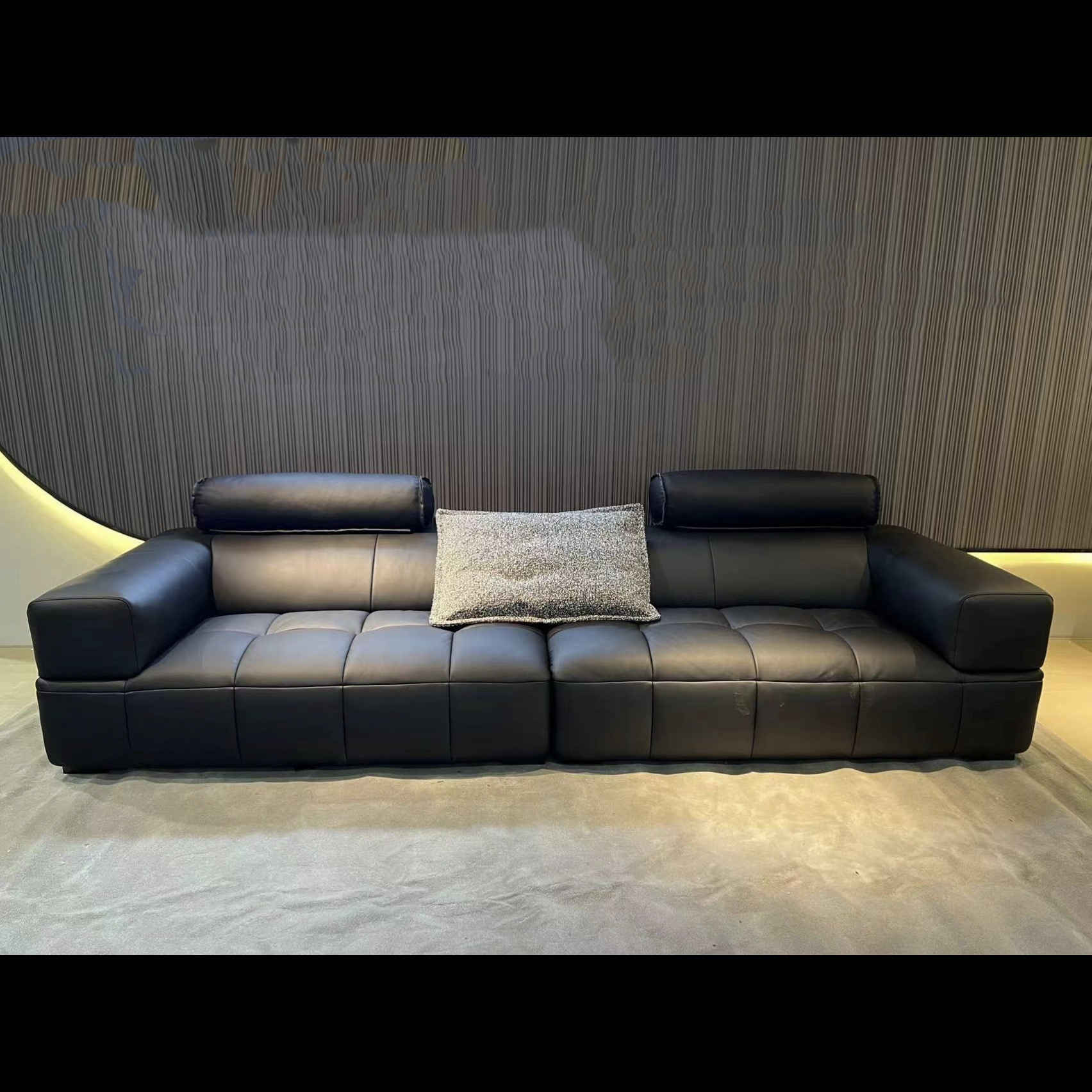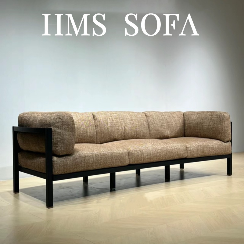 Sofa tiga kursi baris lurus hitam, desainer minimalis Italia, sofa empat kursi bawah besar hitam sapi, sofa baru