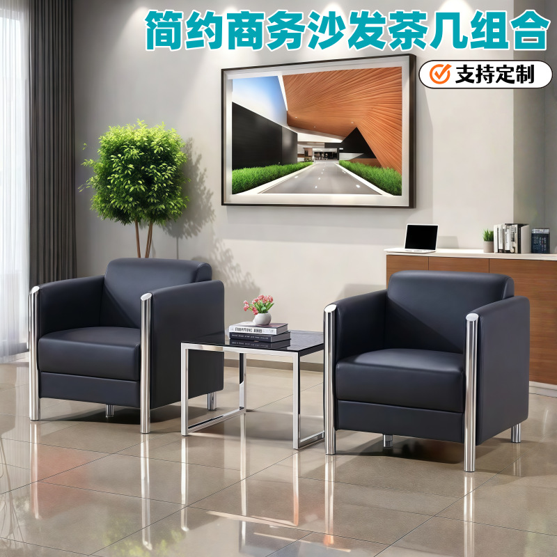 Penerimaan bisnis sofa kantor, tiga kursi, sandaran negosiasi kursi tunggal, kombinasi meja kopi sofa atmosfer
