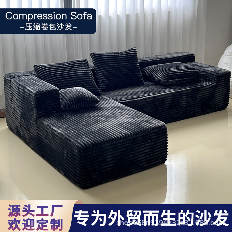 Sofa Kompresi Modul Ekspor Lintas Batas Kain Corduroi Besar Vakum Sapi Hitam Penuh Spons Sofa Tanpa Kerangka