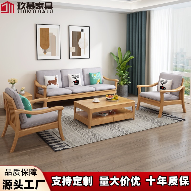 Sofa kayu padat kombinasi ruang tamu rumah tangga ekonomis musim dingin dan musim panas penggunaan ganda Nordik sederhana penjualan langsung pabrik baru