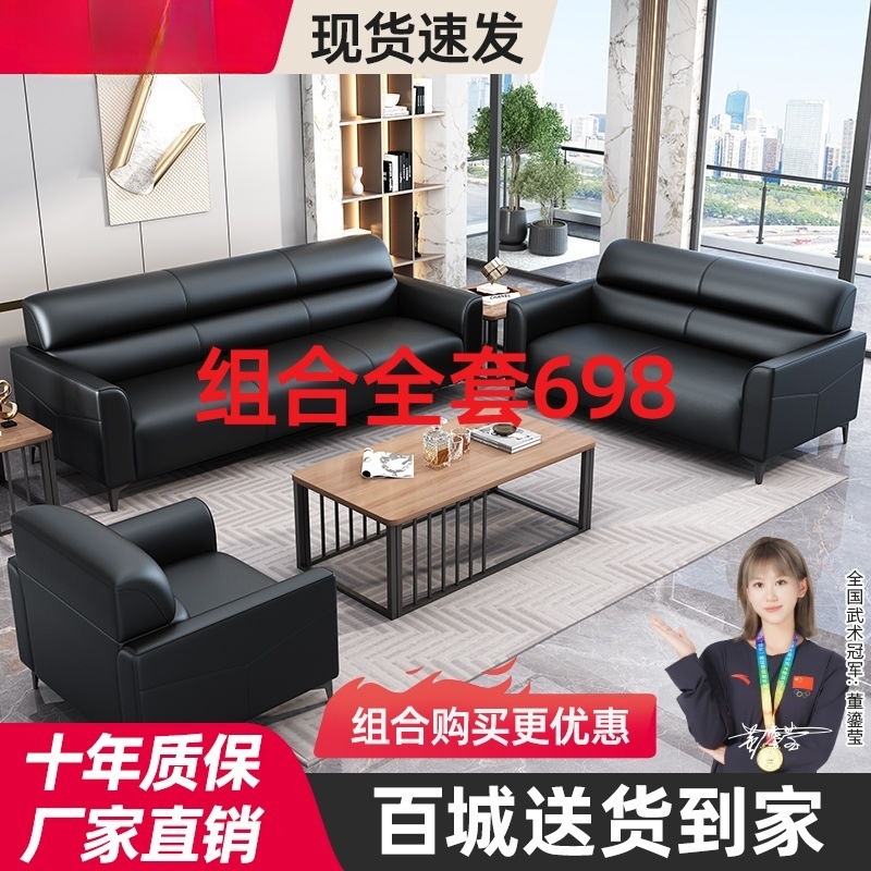Sofa kulit kantor, setelan kombinasi meja kopi, sofa tiga kursi, ruang resepsi modern, sederhana