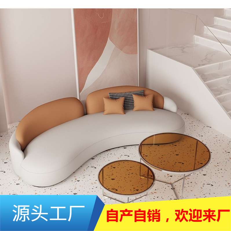 Sili kain desainer gaya arc sofa studio arc cahaya mewah bentuk khusus salon kecantikan bulan sabit tiga kursi