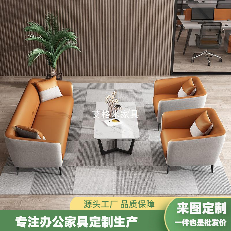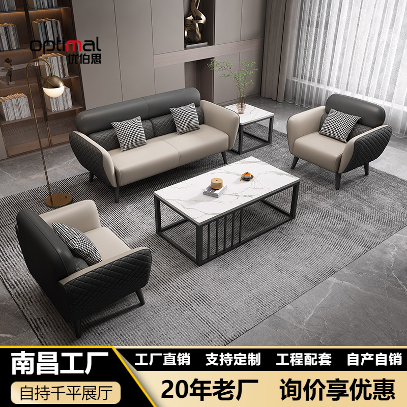 Sofa kantor sederhana modern bisnis ruang tamu Nordik Kulit sofa kantor meja kopi setelan kombinasi