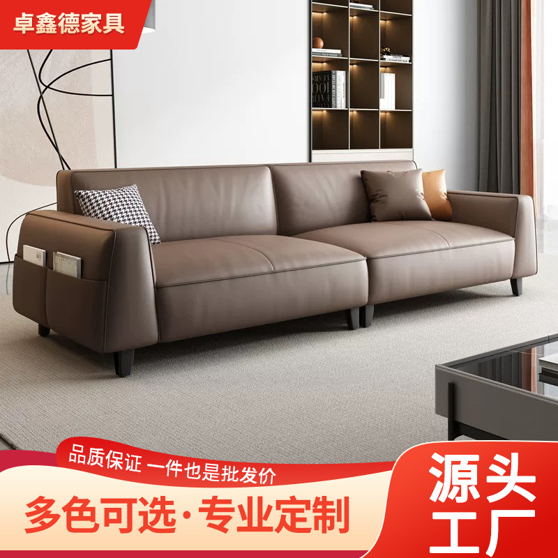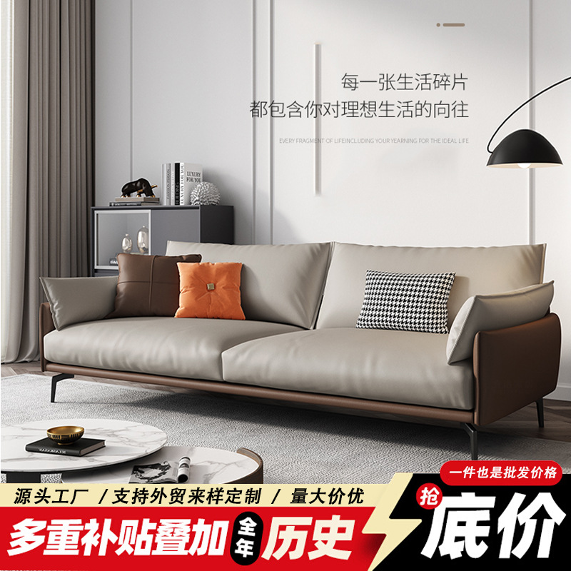 Sofa Horizon Minimalis Gaya Italia Lapisan Datar Besar Seni Kulit Ruang Tamu Tanpa Tali Tangan Lurus Samping Beberapa Warna Putih Gaya Krim