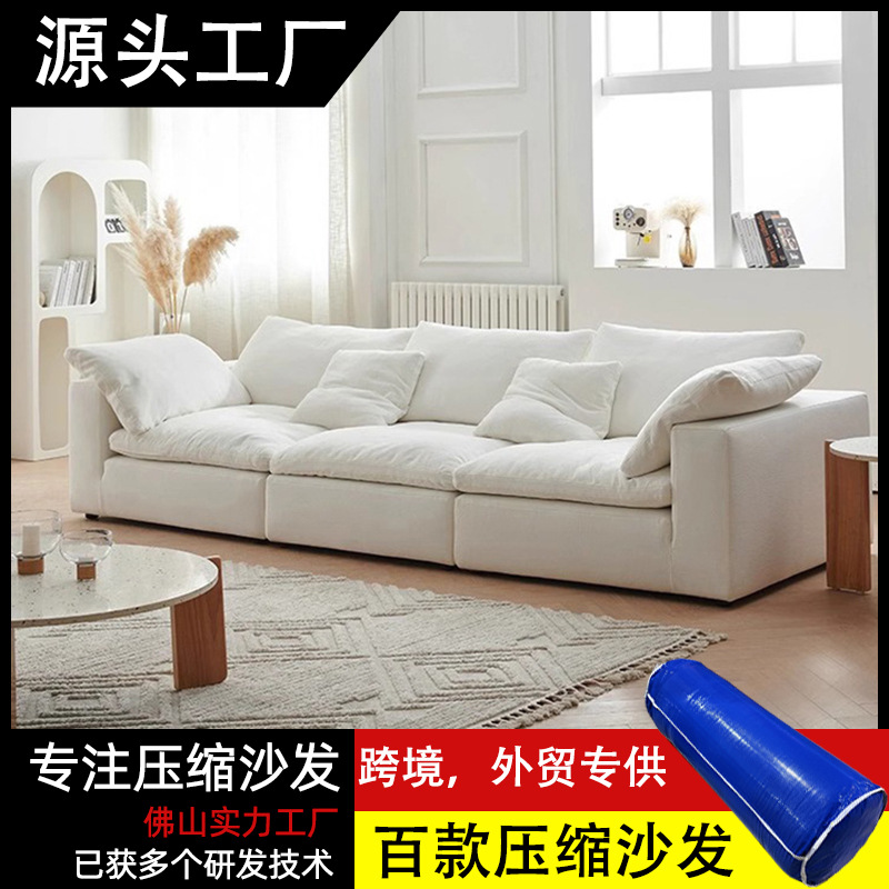 Sofa kain lurus untuk ruang tamu, apartemen kecil, sofa awan kompresi vakum sederhana, bentuk L seperti awan, dapat dilepas dan dicuci.