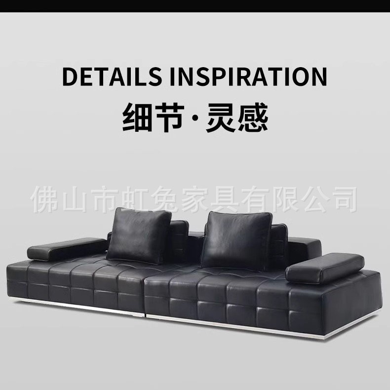 Sofa Fungsional Kulit Sapi Hitam Besar Minimalis Gaya Italia Sofa Seni Bingkai Dasar Kayu Pinus Kulit Sapi Lapisan Atas Atas Ruang Tamu