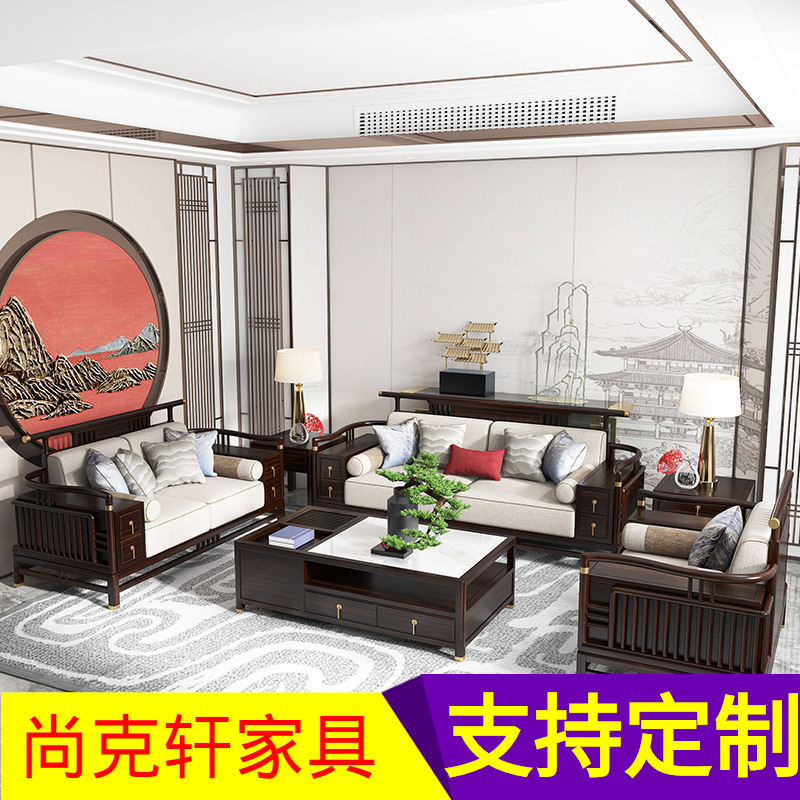Sofa kayu padat gaya Tiongkok, baru, kombinasi modern gaya Tiongkok, ruang tamu Zen, musim dingin dan musim panas, furnitur gaya Tiongkok penggunaan ganda