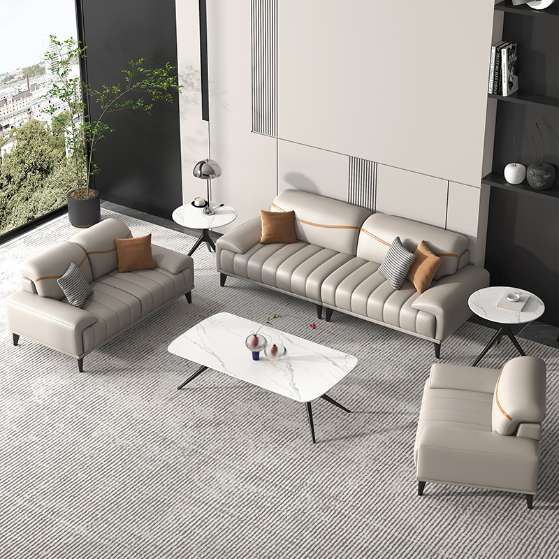 Set Sofa Kantor Kulit Asli Meja Kopi Apartemen Sewa Kamar Tamu Modern Minimalis Menerima Bisnis Unit Kecil