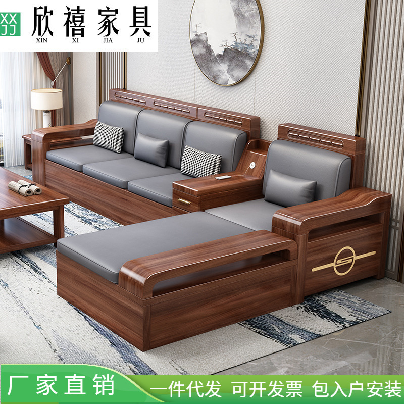 Sofa kenari Cina kombinasi kayu padat musim dingin dan musim panas kain penyimpanan ruang tamu penggunaan ganda sofa sofa sofa sofa sudut L