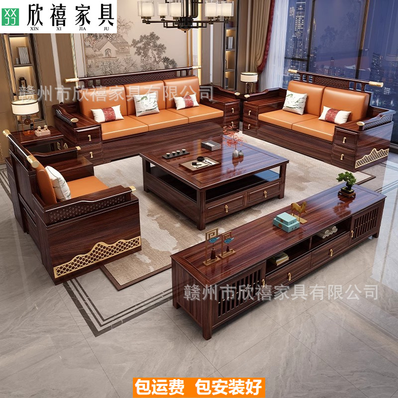 Sofa kantor meja kopi kombinasi, resepsi bisnis hotel meja depan ruang menunggu area negosiasi sofa kayu solid
