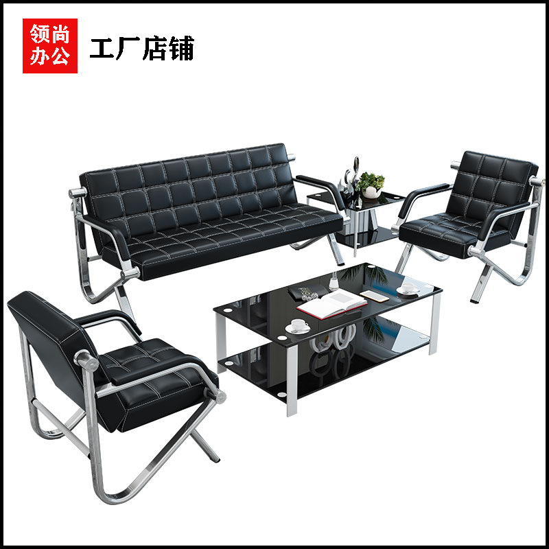Sofa kantor sederhana modern penerimaan bisnis kantor bingkai baja sofa tiga kursi meja kopi setelan kombinasi