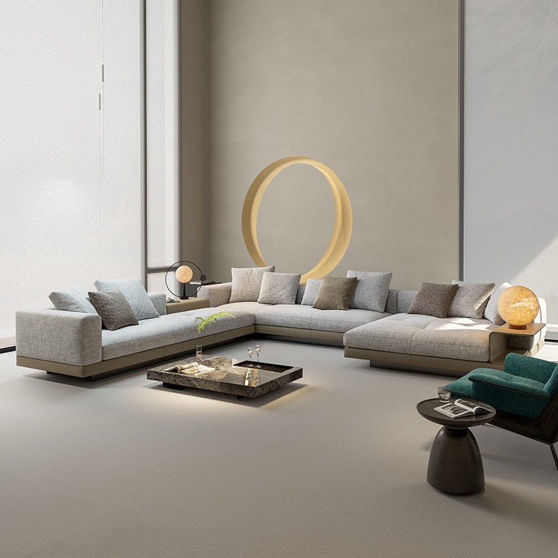 Sofa kulit minimalis besar, ruang tamu datar, sofa sederhana bisnis kantor besar apartemen katun dan linen