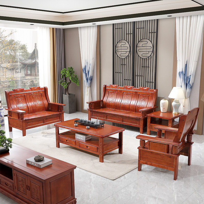 Sofa Kayu Solid Model Baru Kombinasi Unit Besar dan Kecil Sofa Selir Sederhana Modern Ruang Tamu Perabot Penyimpanan Kayu Gaya Tiongkok