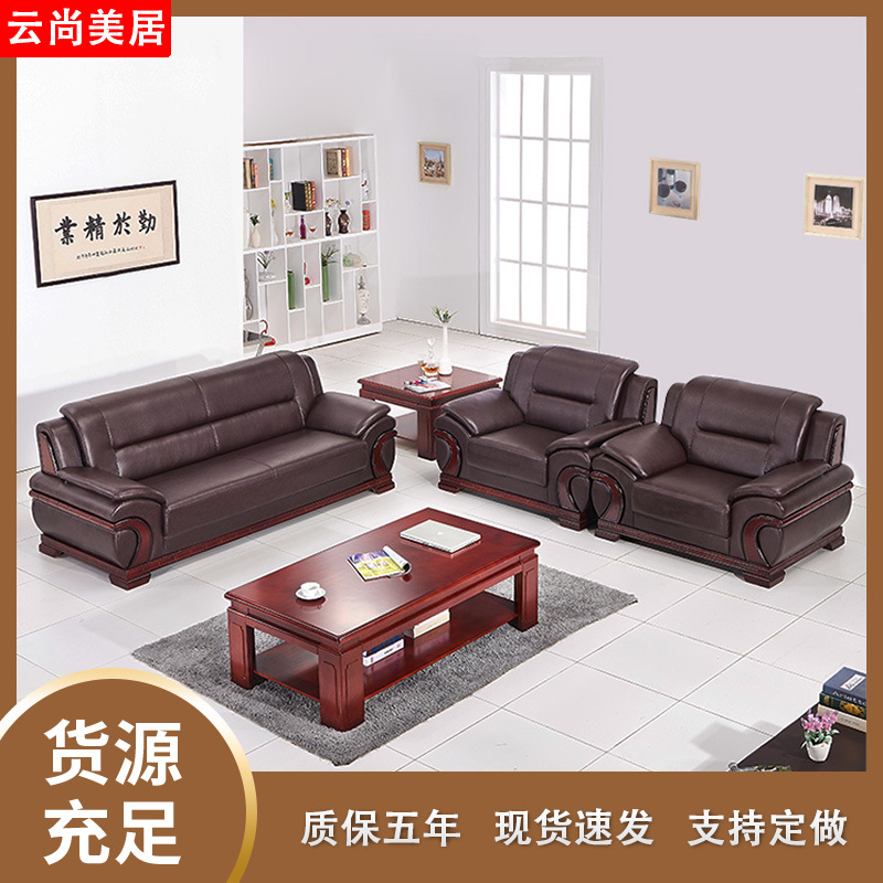 Sofa kantor sederhana kombinasi meja kopi, resepsi bisnis tamu modern Kulit Asli Tiongkok kayu padat sofa tiga kursi
