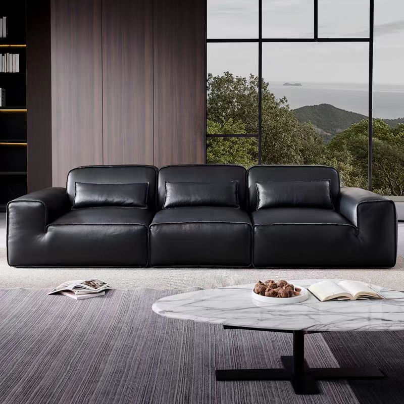 Sofa Sapi Hitam Besar Gaya Italia Sederhana Modern Ruang Tamu Tahu Blok Lurus Istirahat Istirahat Sofa Istirahat Apartemen Sewa