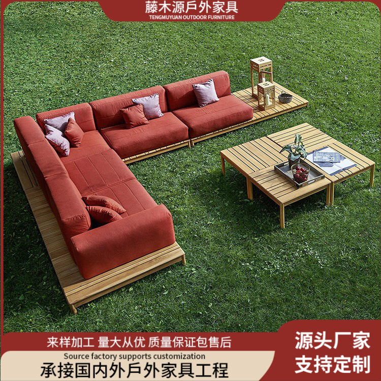 Sofa taman santai balkon luar ruangan, seni sumber kayu rotan Nordik luar ruangan kombinasi tahan air antikarat sofa taman santai balkon luar ruangan