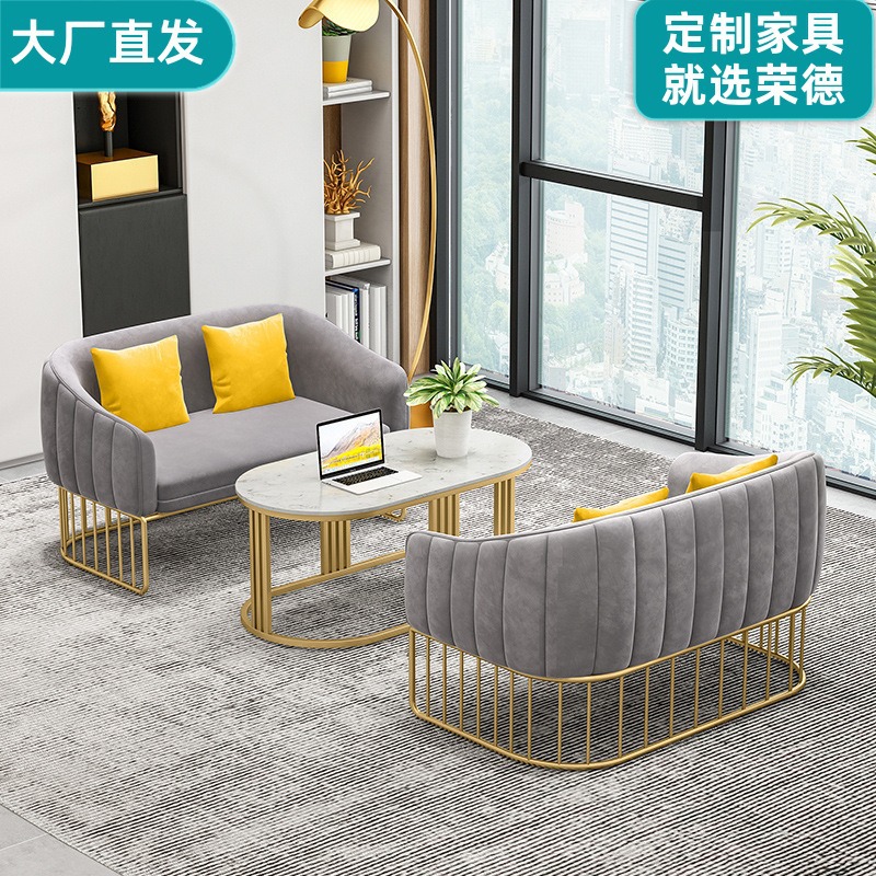 Setelan kombinasi meja teh mewah, setelan kantor kulit asli, ruang resepsi bisnis, modern, sederhana, ringan