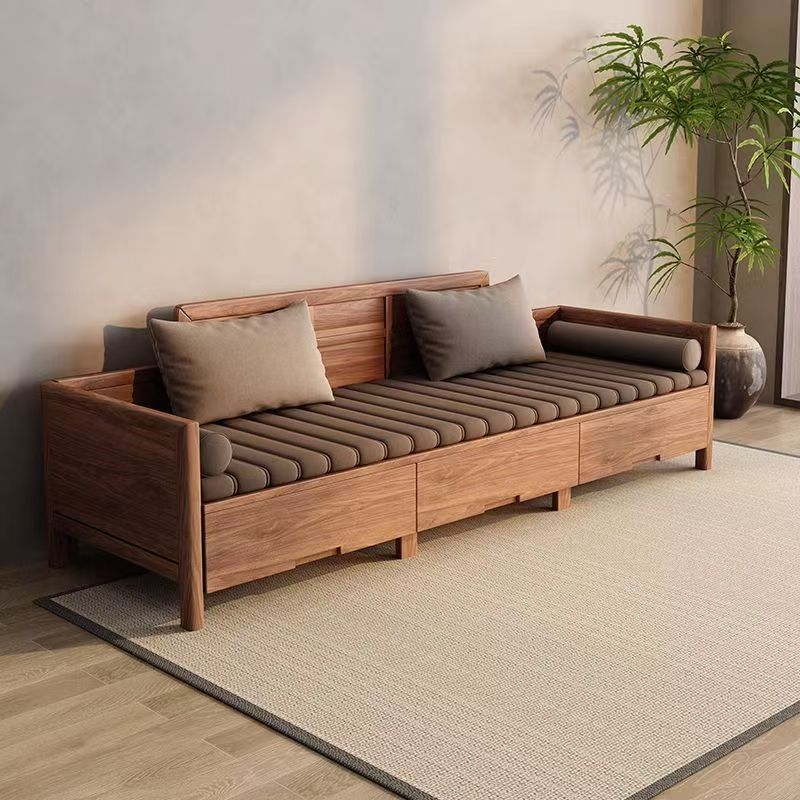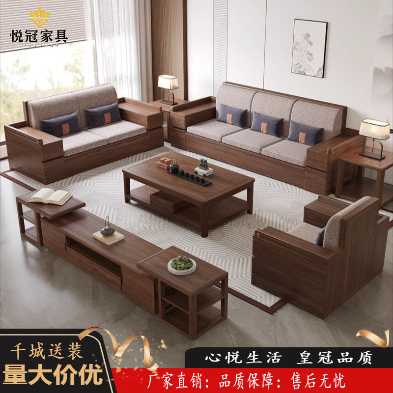 Kombinasi sofa kayu padat kenari hitam Amerika Selatan penggunaan ganda musim dingin dan musim panas semua penyimpanan kayu solid kayu apartemen kecil ruang tamu gaya Tiongkok