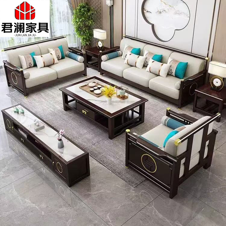 Kombinasi Sofa Kayu Solid Kayu Karet Gaya Tiongkok Baru Sofa Kayu Solid Penyimpanan Ruang Tamu Villa Musim Dingin dan Musim Panas Model Modern
