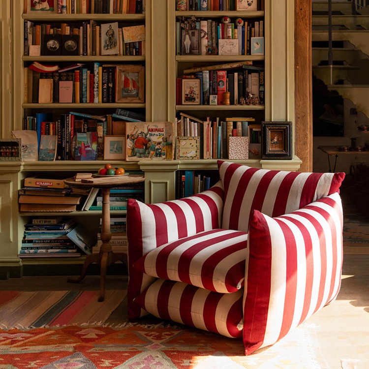 Kursi balkon kain Denim bergaris merah biru gaya Perancis kursi desainer ruang tamu kursi gantung mode selebriti Internet kursi tunggal