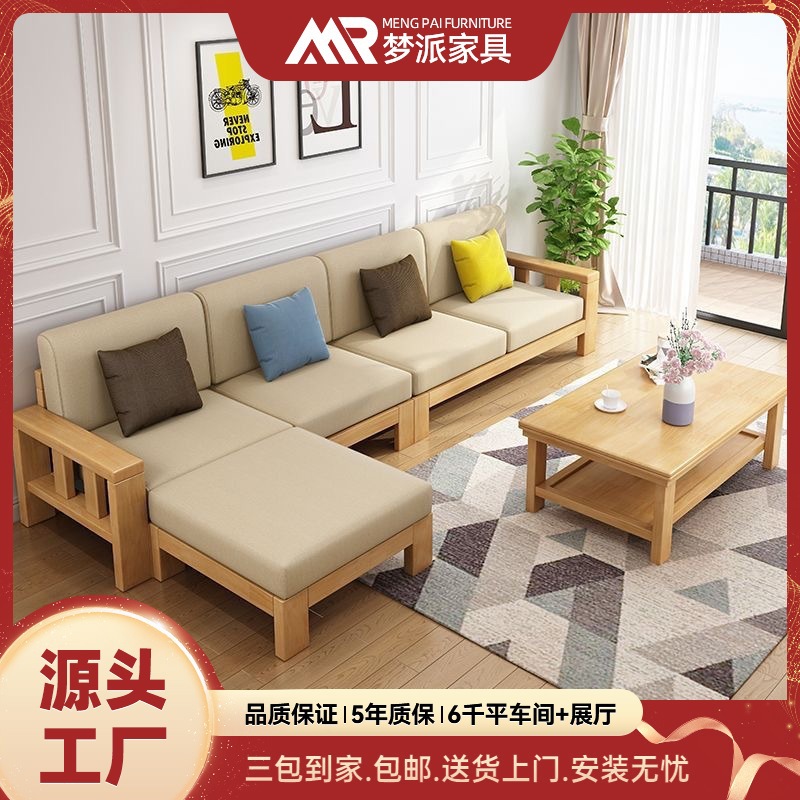 Kombinasi sofa, Nordic, kayu padat, ruang tamu, sofa tempat tidur modern minimalis, kain sofa sudut, rumah sewa
