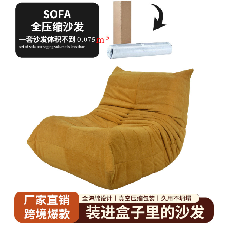 Sofa Kompresi Pabrik Foshan Spons Tanpa Bingkai Satu Bentuk Ulat Bulu Malas Selebgram Kain Vakum Kursi SOFO