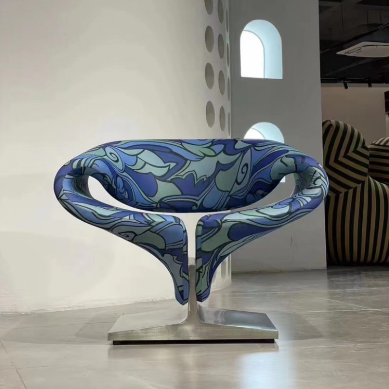 Desainer sofa tunggal kursi pita kapas pembentuk kaki besi tahan karat kursi santai modis bentuk kreatif