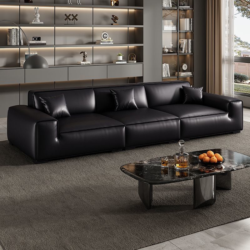 Sofa Sapi Hitam Besar Gaya Italia Sederhana Modern Ruang Tamu Kulit Asli Tahu Istirahat Lurus Sofa Istirahat Apartemen Sewa