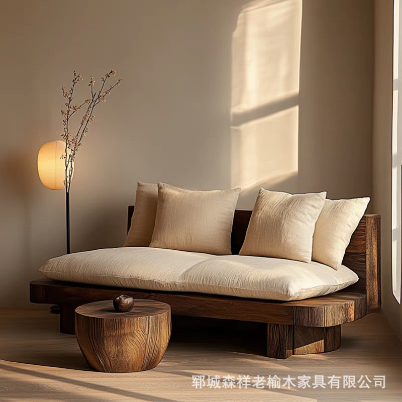 Sofa Kayu Solid Unit Kecil Homestay Hotel Old Elm Sofa Lurus Sofa Lurus Kursi Sandaran