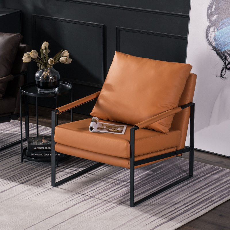 Sofa kulit bingkai besi Modern sederhana, dekorasi sofa penerimaan bisnis kombinasi kursi sofa tunggal lembut