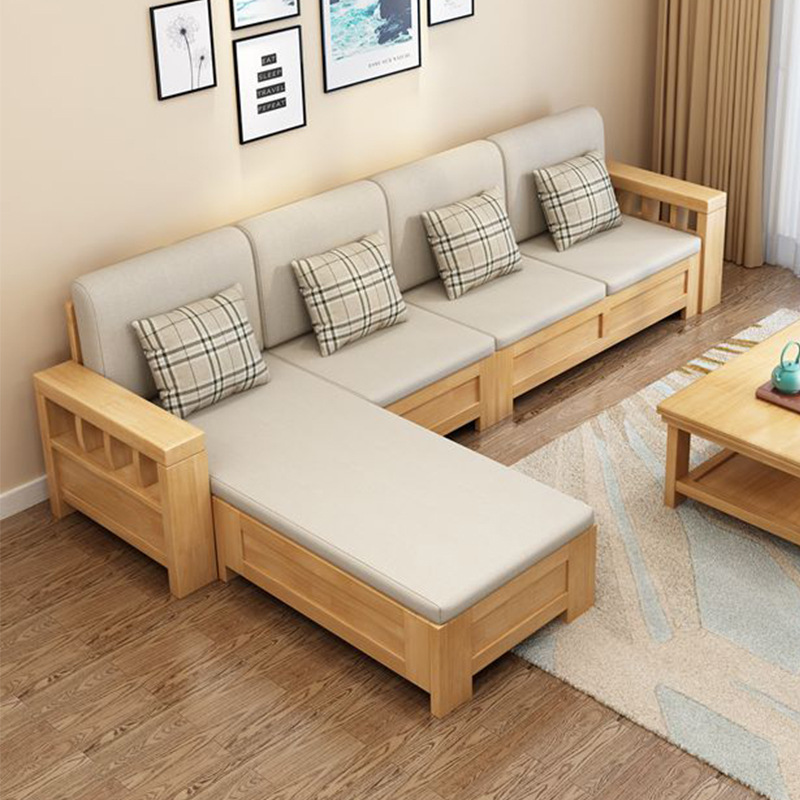 Sofa Nordic, kombinasi sofa kayu padat gaya Tiongkok baru sofa kayu solid lilin putih teknologi kayu sofa kain penggunaan ganda musim dingin dan musim panas