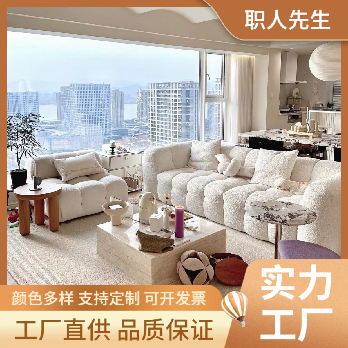 Sofa katun permen gaya krim, sofa ruang tamu 2024 gaya baru selebriti Internet kecil apartemen cloud lampuol sofa Perancis