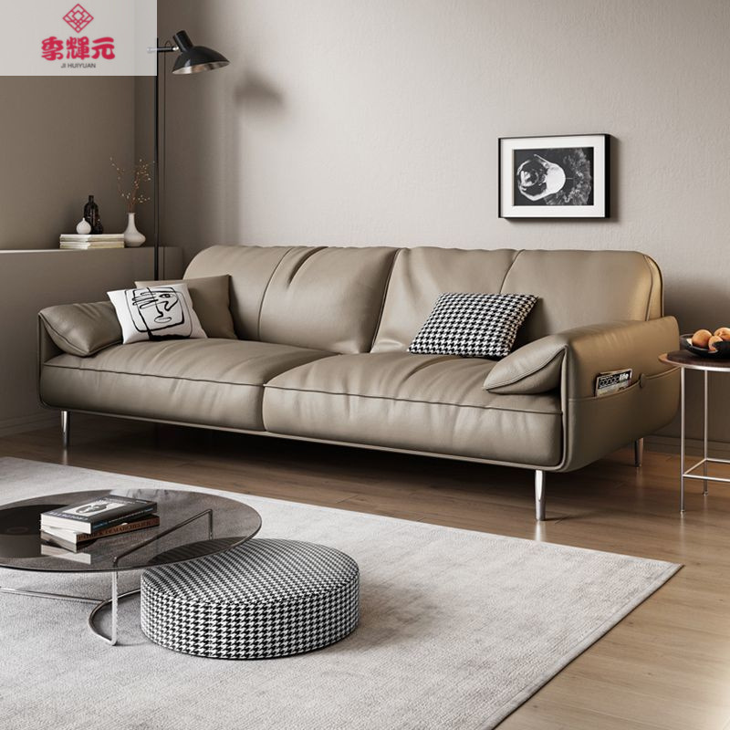 Set Kombinasi Meja Kopi Sofa Gaya Sederhana Sofa Tiga Orang Seni Kulit Mewah Ringan Resepsionis Bisnis Tamu Modern