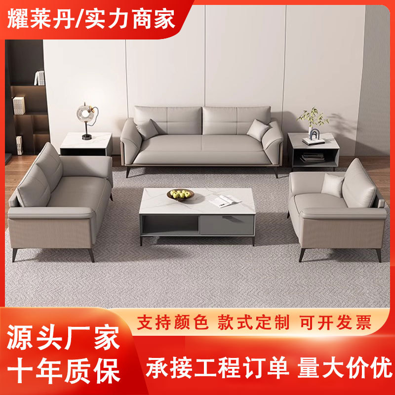 Sofa Kulit Kantor Modern Sederhana Kombinasi Meja Kopi Kamar Negosiasi Bisnis Ruang Penerimaan Perusahaan Tiga Orang