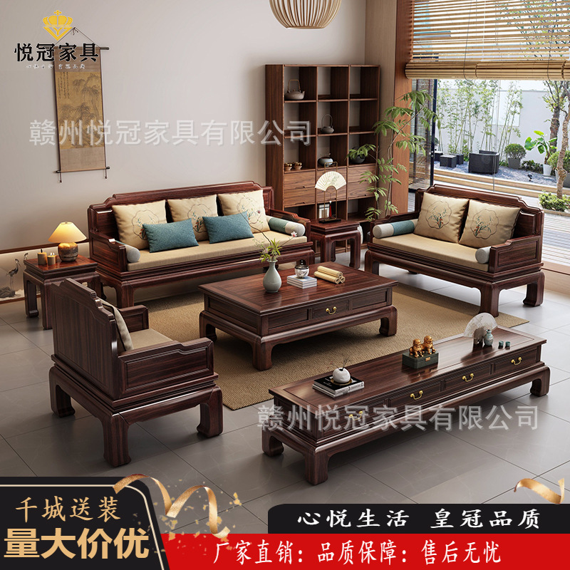 Sofa Kayu Wujin Gaya Tiongkok Baru Kombinasi Sofa Kayu Solid Musim Dingin dan Musim Panas Ruang Tamu Kelas Atas Gaya Tiongkok Furnitur Villa Penyimpanan Angin Tiongkok
