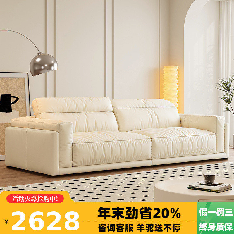 Sofa Kulit Sapi Lapisan Kepala Sapi Hitam Besar Tongyu Khusus Sofa Kulit Sapi Gaya Perancis Gaya Krim Ruang Tamu Potongan Tahu Lurus Sofa Kulit Asli