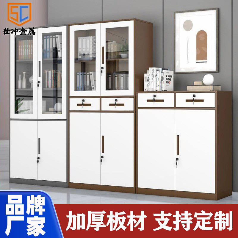 Kabinet arsip kayu baja, lemari buku kabinet besi kaca, lemari file kantor, lemari penyimpanan sertifikat, Loker