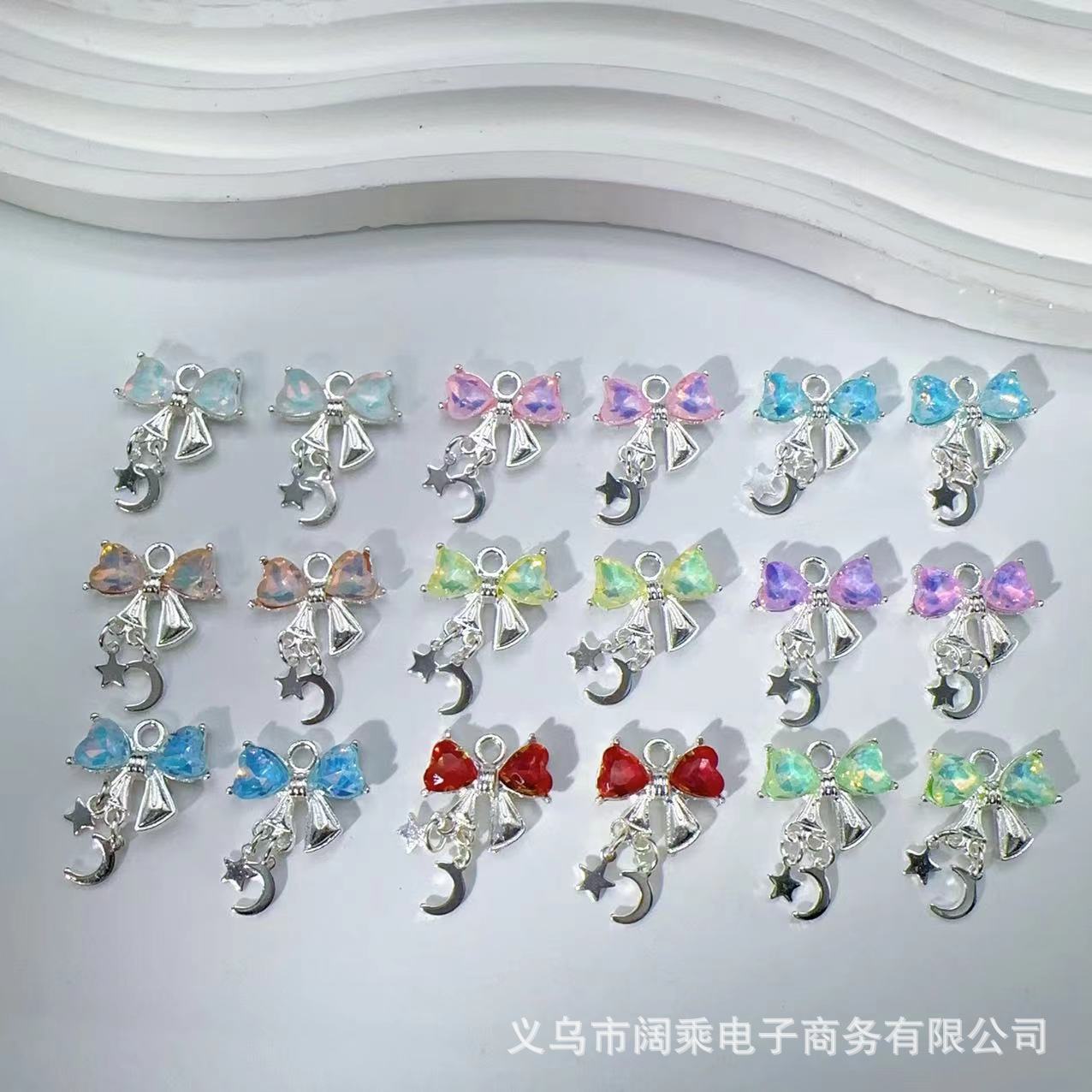 Mocha Warna-Warni Tali Gantung Bintang Bulan Tali Pita Kupu-Kupu Liontin Rantai Tangan Manik DIY Aksesori Kalung Anting
