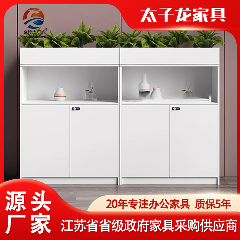 Lemari Partisi Area Kantor Lemari Slot Bunga Tanaman Hijau Lemari Dokumen Kayu Lemari Arsip Kabinet Arsip Lemari Bahan Putih Kabinet Sisi Meja
