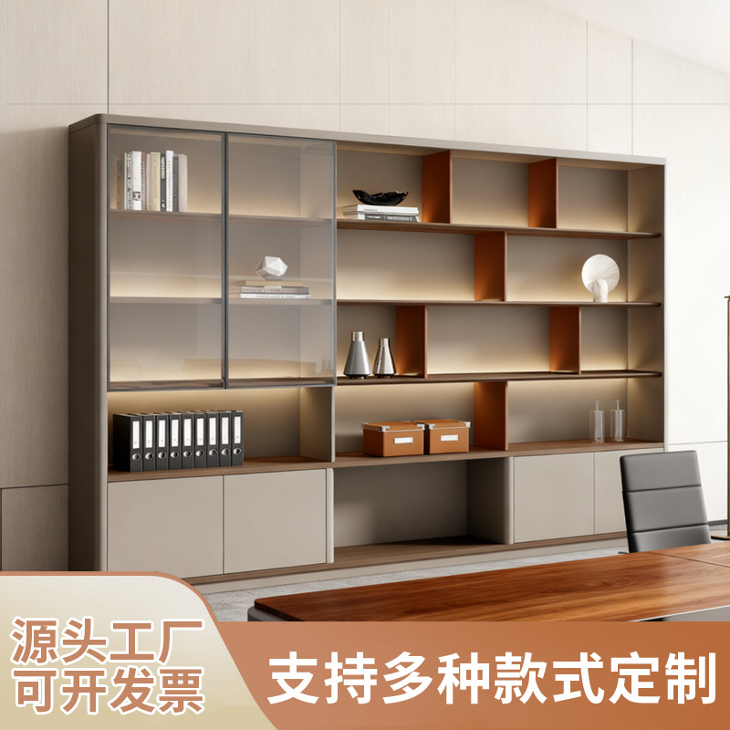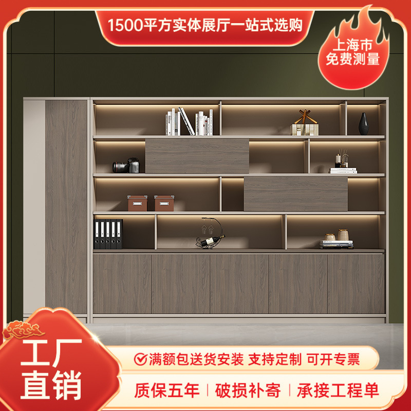 Shanghai Boss Office Lemari Arsip Bahan Kayu Mewah Ringan Lemari Penyimpanan Lemari Buku Lemari Latar Belakang Kantor Manajer