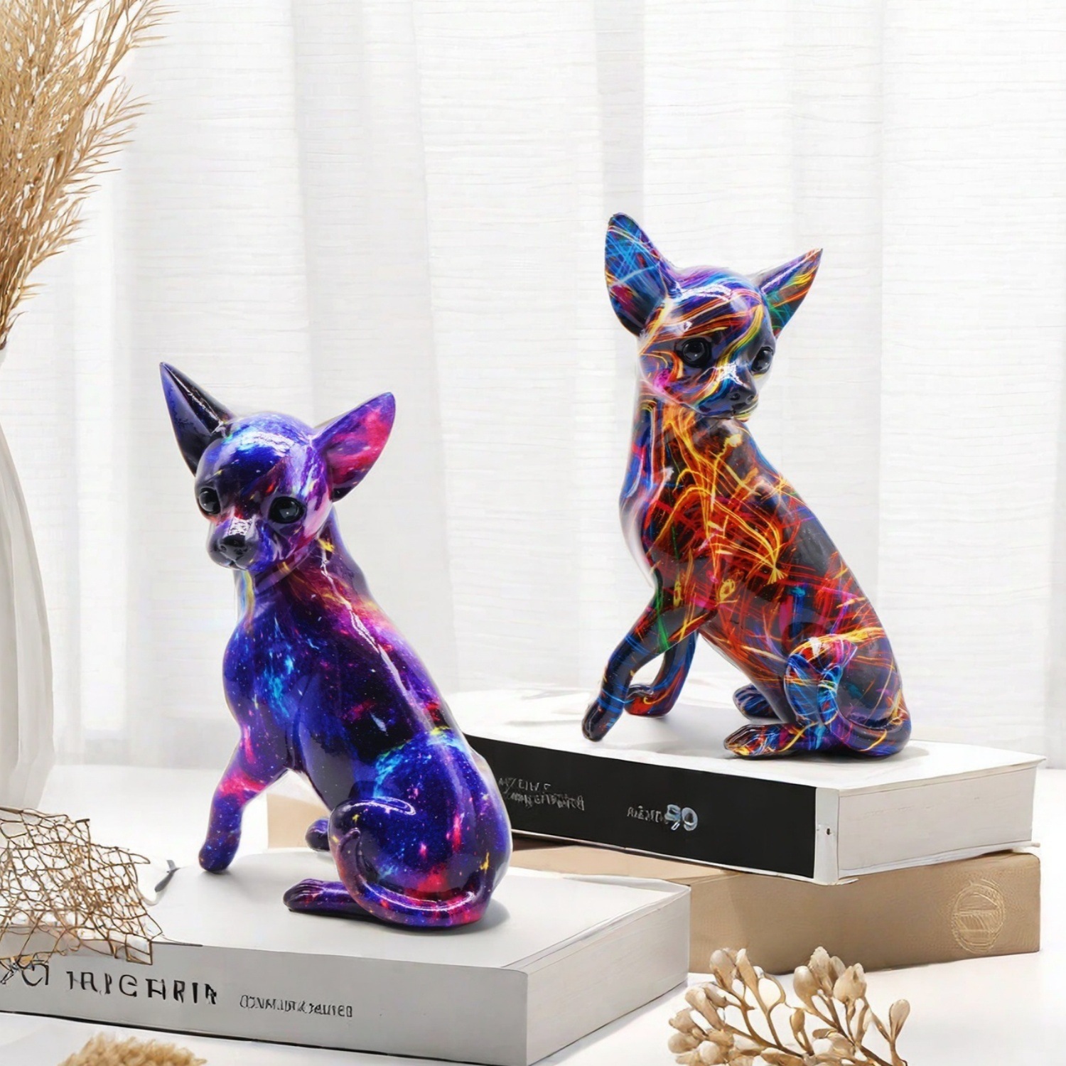 现代创意炫彩吉娃娃客厅酒柜摆件树脂工艺品家居玄关办公室装饰品