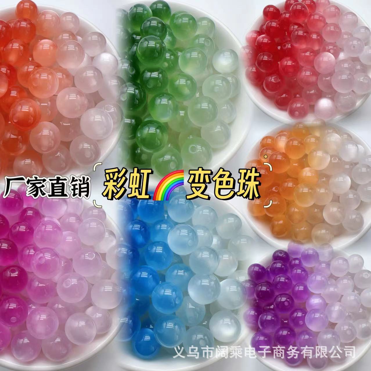 10mm七彩彩虹糖果色紫外线变色猫眼树脂珠diy串珠手链项链散珠子