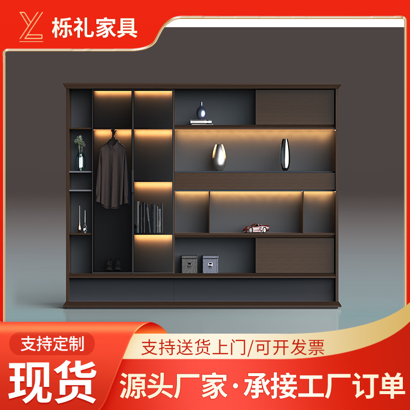 Chibi lemari arsip modern mewah ringan, lemari buku latar belakang dengan lampu dan kabinet teh, lemari buku latar belakang kabinet Dinding