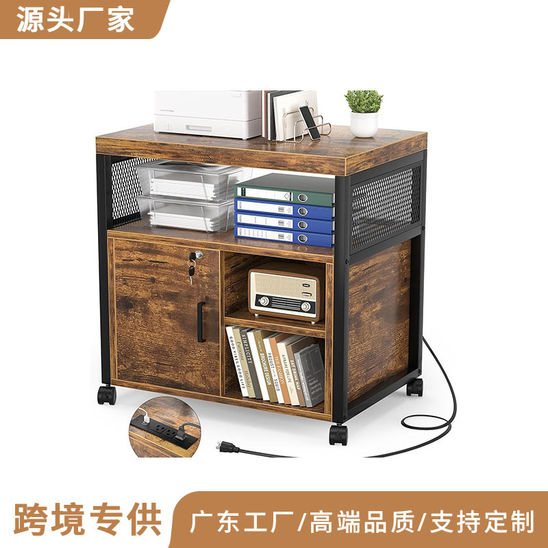 Lemari dokumen komersial dengan soket port pengisian daya kabinet dokumen kantor horizontal dengan katrol braket printer yang dapat dilepas