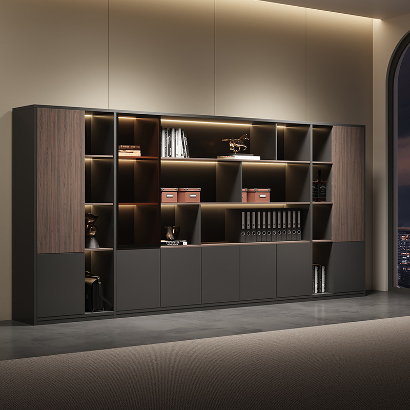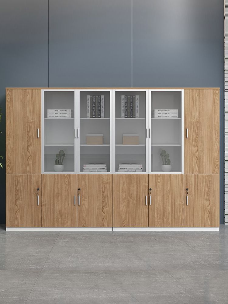 Lemari Arsip Kantor Kemewahan Ringan Lemari Data Kayu Solid Lemari Penyimpanan Bahan Tipe Lantai Dinding Tinggi Lemari Latar Belakang Bos