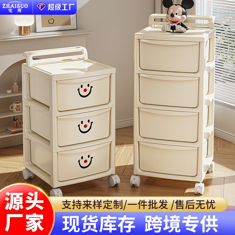 Lemari penyimpanan kamar tidur multi-layer untuk penggunaan di rumah, kotak penyimpanan file ruang tamu/kantor, lemari penyimpanan sederhana, troli bergerak dengan desain wajah tersenyum.