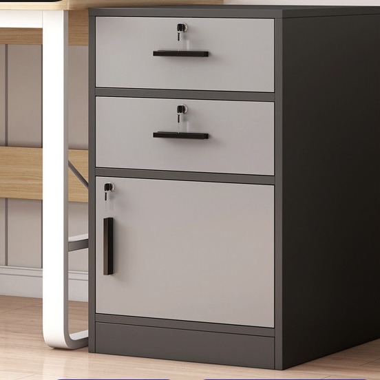 Lemari dapat digerakkan untuk kantor, Kabinet dapat digerakkan bahan besi dan kunci, kabinet tiga laci dengan katrol dan kunci, kabinet bahan lembar besi dorong kecil