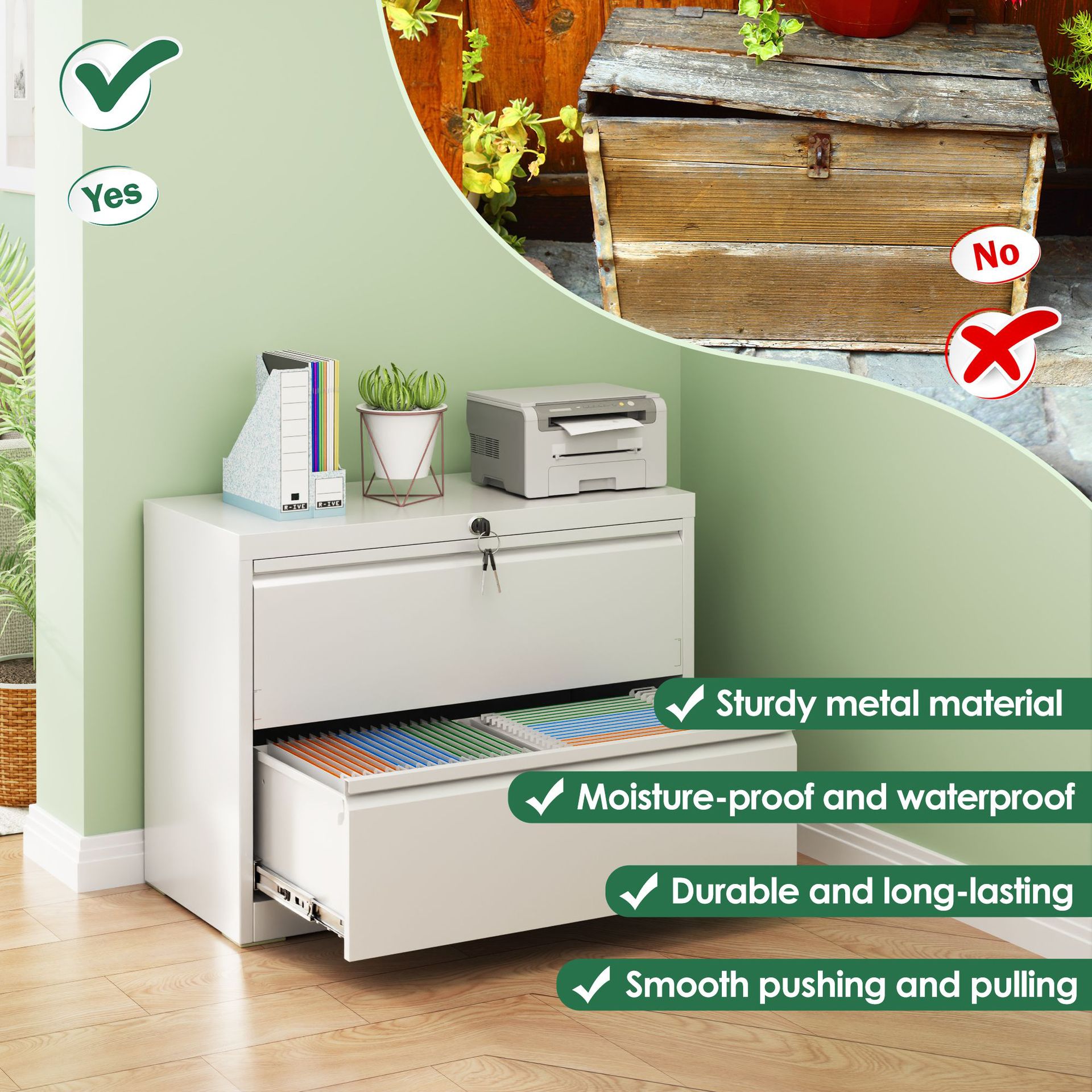 Lemari Lantai Kotak Kartu Lebar Penyimpanan Bahan Penyimpanan Bahan Logam Dua Pompa Baja Kantor Warna Putih Modern Sederhana