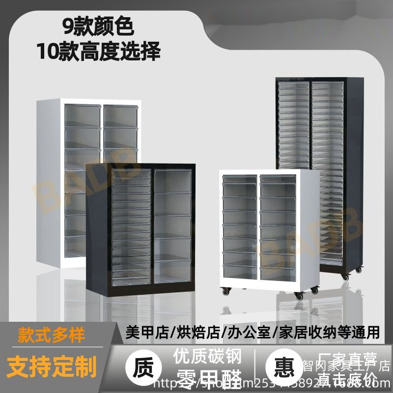 A Zhi 4 Lemari Penyimpanan Manikur Tipe Laci Bawah Datar Lemari Dokumen Bahan Pelotip Kue Warna Putih Lemari Penyimpanan Bahan Baja Hitam