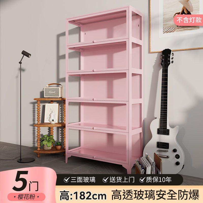 Lemari Tangan Kaca Rak Buku Besi Tahan Debu Lantai Rumah Tangga Kotak Buta Rak Penyimpanan Kayu Model Lemari Tampilan